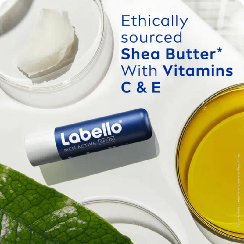 Labello 24H+ Moisture SPF 15 Men Active Lip Balm is specially designed to meet the needs of men’s lips, offering long-lasting hydration and protection against dryness. Its lightweight, non-greasy formula absorbs quickly, leaving lips soft, smooth, and healthy-looking without any shine or color.